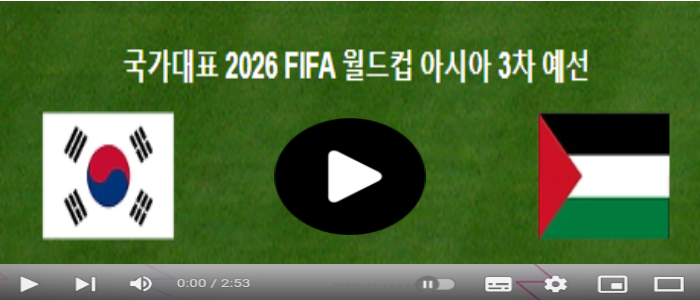 2026년 FIFA 북중미 월드컵 3차 예선전인 팔레스타인과의 경기가 9월 05일에 열립니다. 서울 월드컵 경기장에서 한국과 팔레스타인의 축구 경기가 펼쳐집니다.